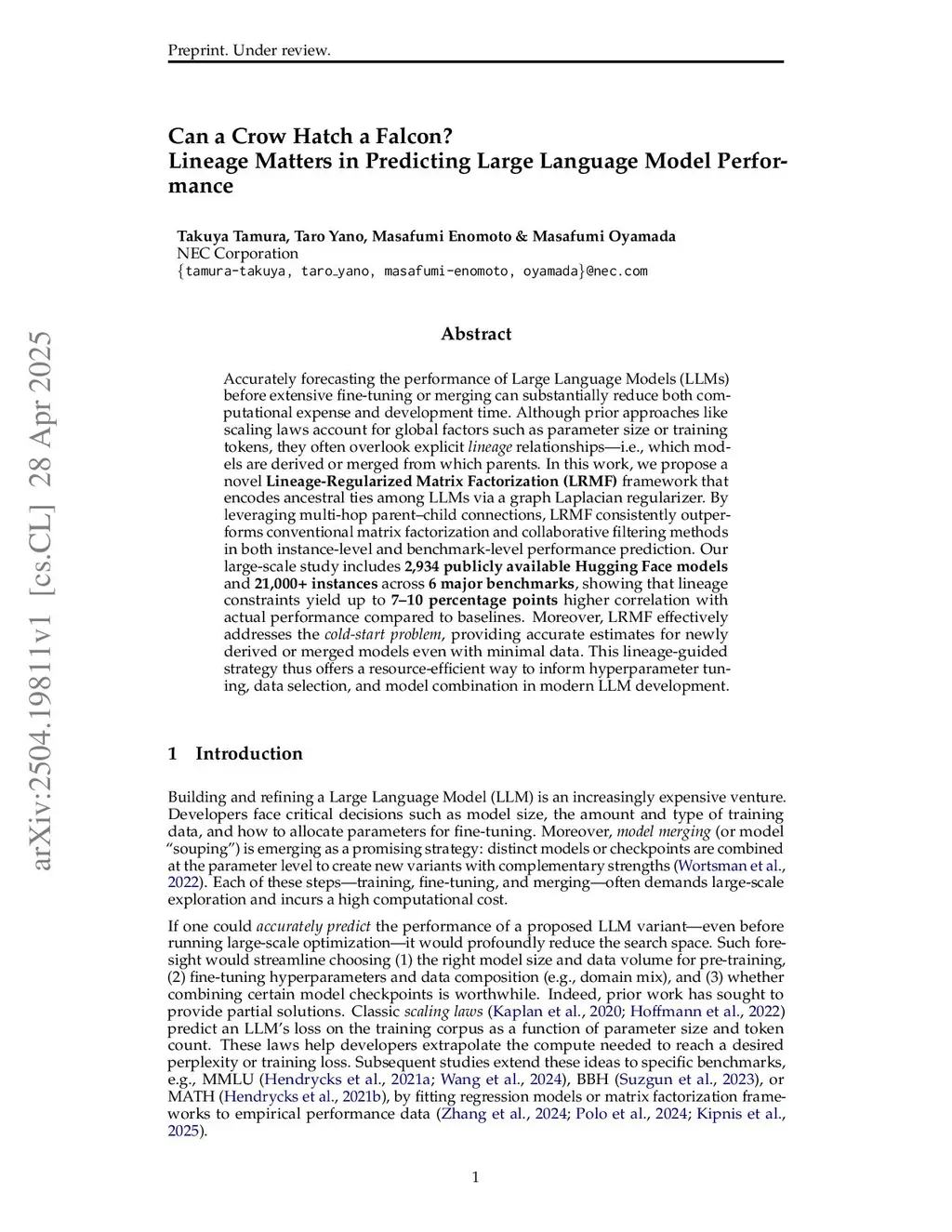 Can a Crow Hatch a Falcon? Lineage Matters in Predicting Large Language Model Performance