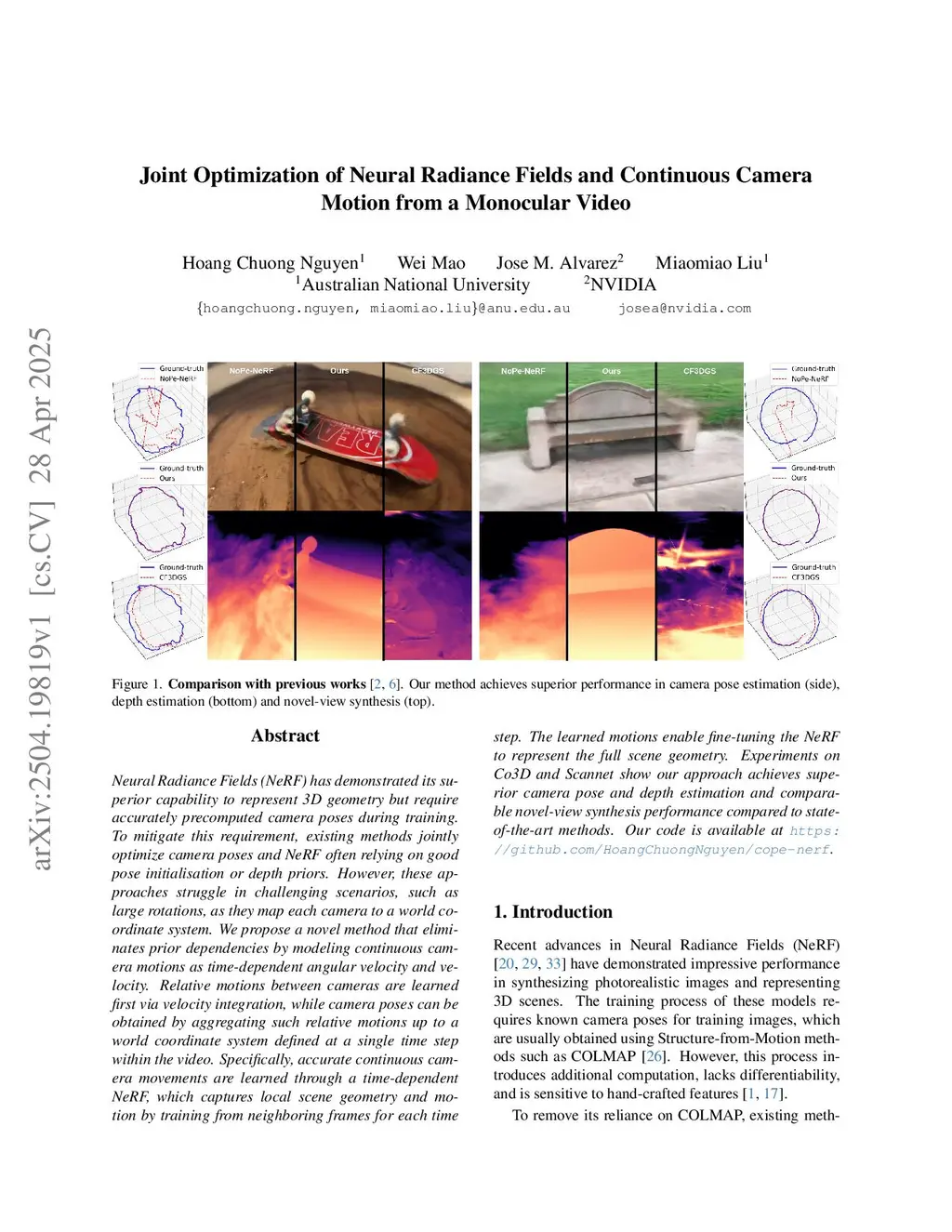 Joint Optimization of Neural Radiance Fields and Continuous Camera Motion from a Monocular Video