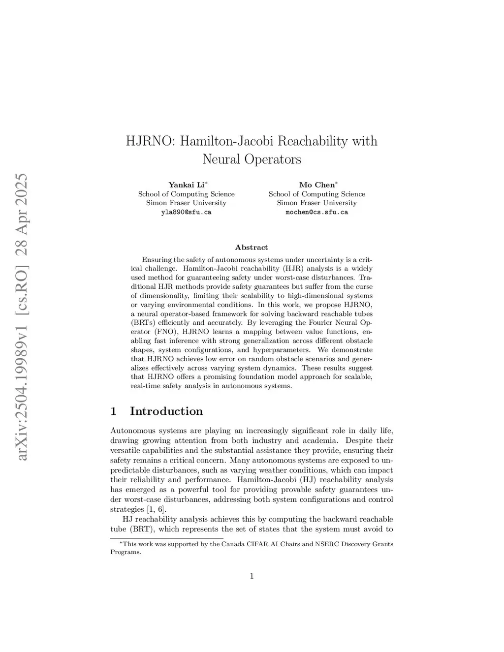 Ensuring the safety of autonomous systems under uncertainty is a critical challenge. Hamilton-Jacobi reachability (HJR) analysis is a widely used method for guaranteeing safety under worst-case disturbances. In this work, we propose HJRNO, a neural operator-based framework for solving backward reachable tubes (BRTs) efficiently and accurately. By leveraging neural operators, HJRNO learns a mapping between value functions, enabling fast inference with strong generalization across different obstacle shapes and system configurations. We demonstrate that HJRNO achieves low error on random obstacle scenarios and generalizes effectively across varying system dynamics. These results suggest that HJRNO offers a promising foundation model approach for scalable, real-time safety analysis in autonomous systems.