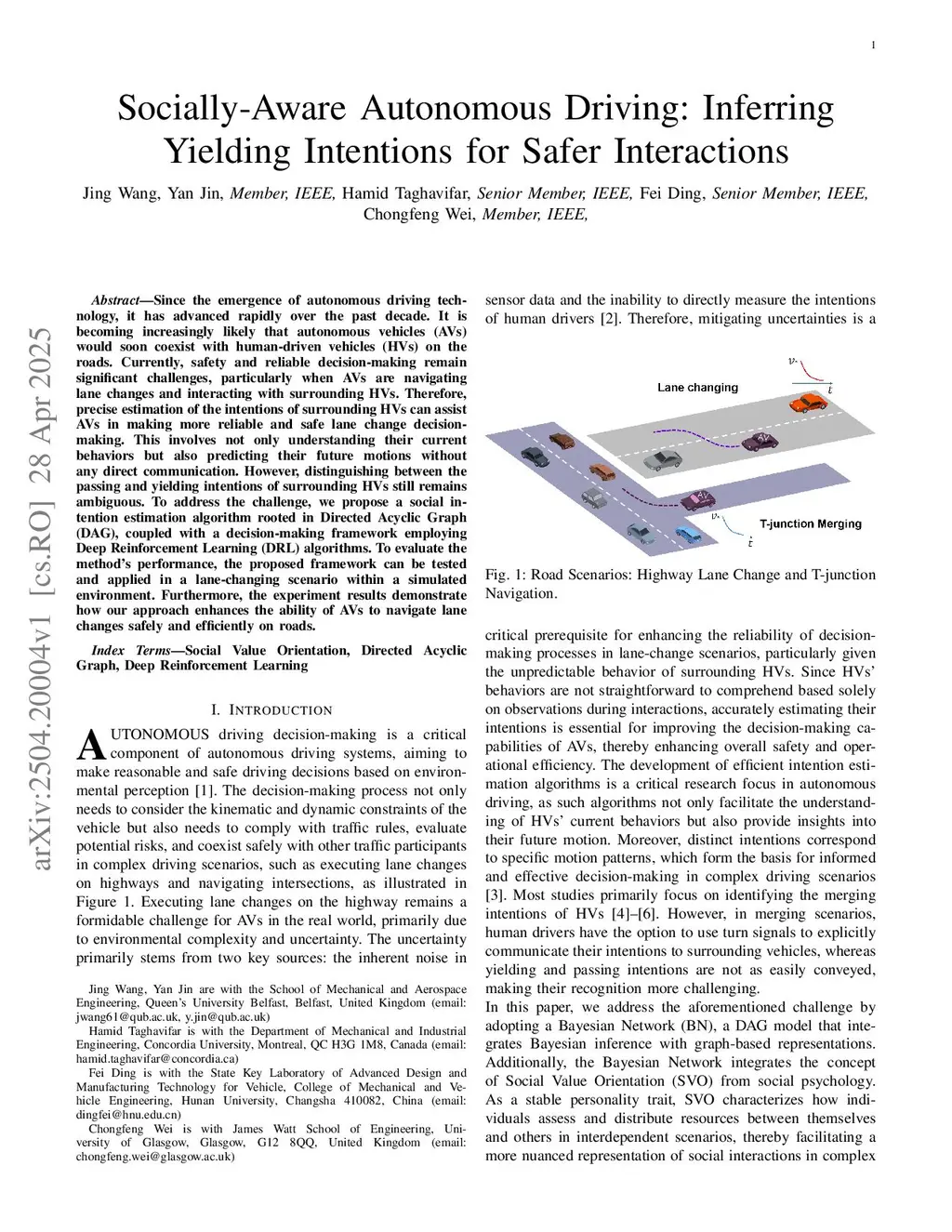 Since the emergence of autonomous driving technology, it has advanced rapidly over the past decade. It is becoming increasingly likely that autonomous vehicles (AVs) would soon coexist with human-driven vehicles (HVs) on the roads. Currently, safety and reliable decision-making remain significant challenges, particularly when AVs are navigating lane changes and interacting with surrounding HVs. Therefore, precise estimation of the intentions of surrounding HVs can assist AVs in making more reliable and safe lane change decision-making. This involves not only understanding their current behaviors but also predicting their future motions without any direct communication. However, distinguishing between the passing and yielding intentions of surrounding HVs still remains ambiguous. To address the challenge, we propose a social intention estimation algorithm rooted in Directed Acyclic Graph (DAG), coupled with a decision-making framework employing Deep Reinforcement Learning (DRL) algorithms. To evaluate the method's performance, the proposed framework can be tested and applied in a lane-changing scenario within a simulated environment. Furthermore, the experiment results demonstrate how our approach enhances the ability of AVs to navigate lane changes safely and efficiently on roads.