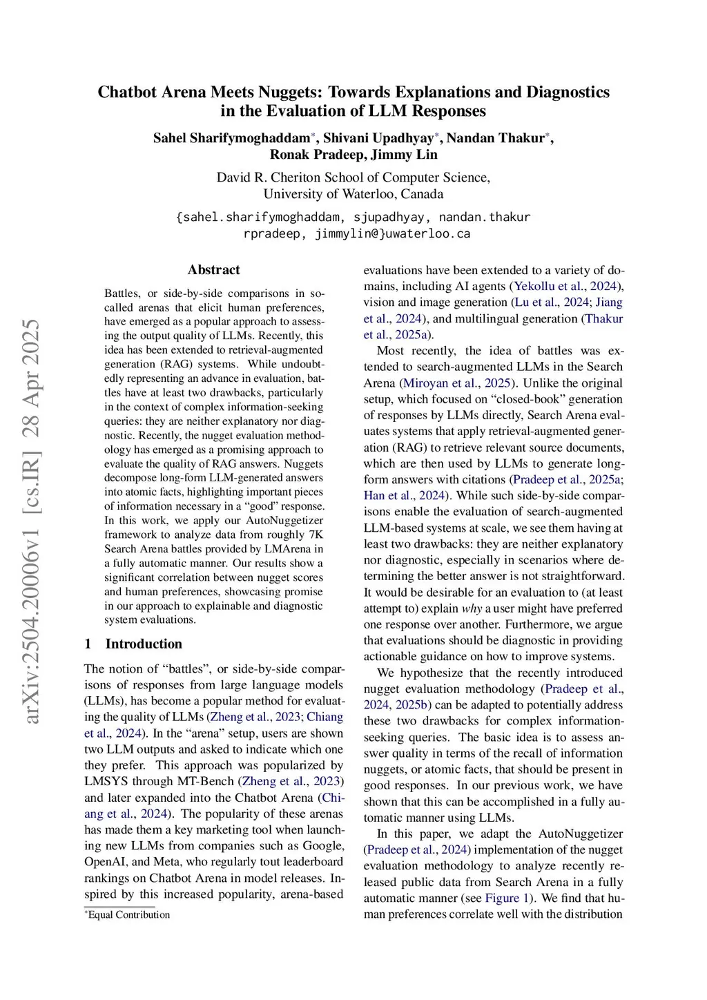 Chatbot Arena Meets Nuggets: Towards Explanations and Diagnostics in the Evaluation of LLM Responses