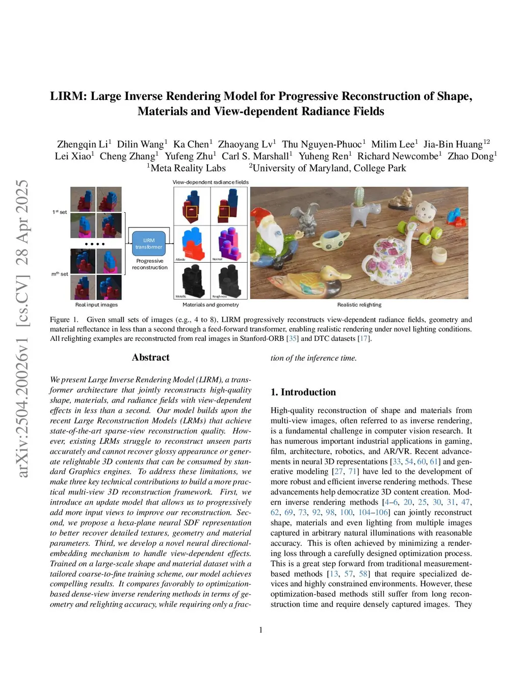 LIRM: Large Inverse Rendering Model for Progressive Reconstruction of Shape, Materials and View-dependent Radiance Fields