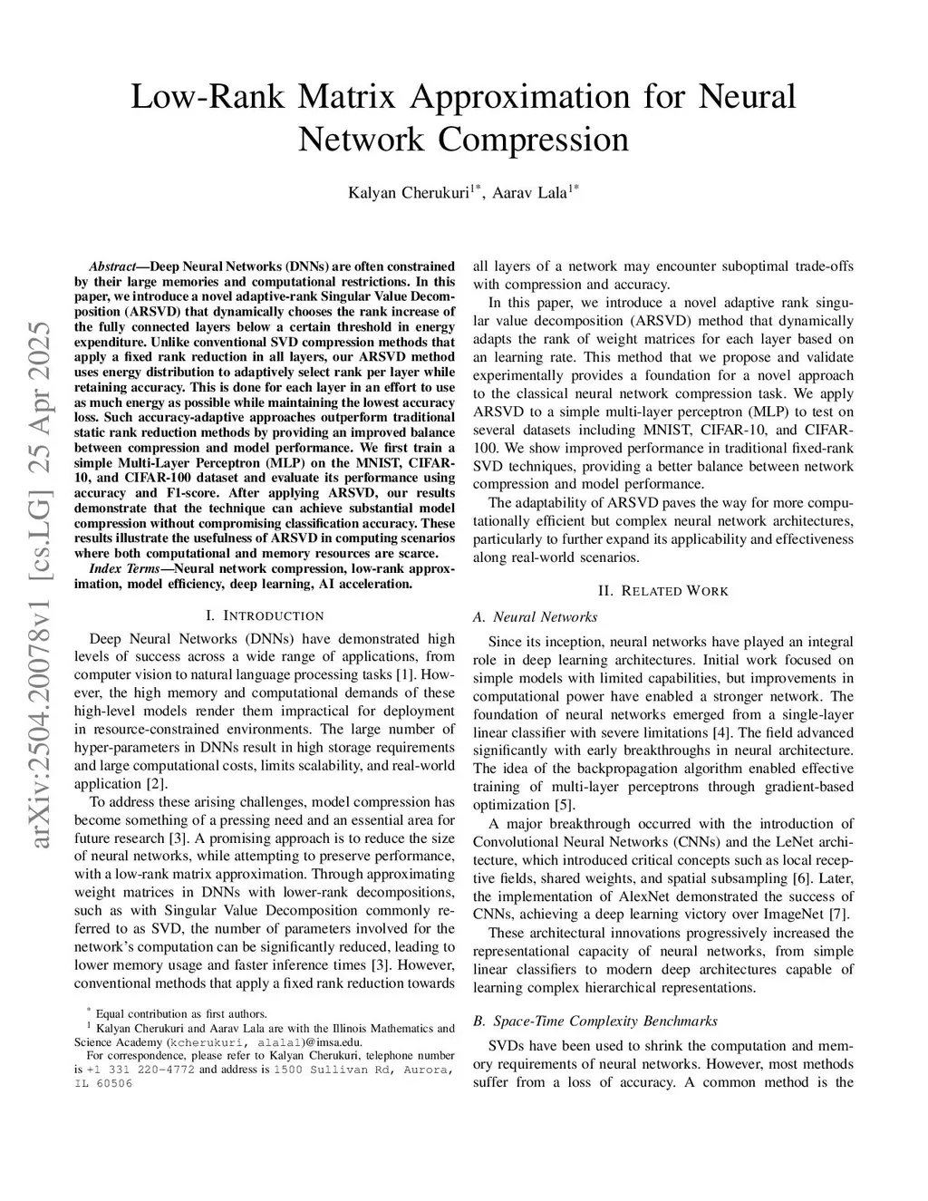 Low-Rank Matrix Approximation for Neural Network Compression