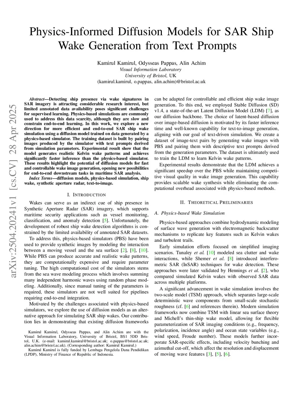 Physics-Informed Diffusion Models for SAR Ship Wake Generation from Text Prompts