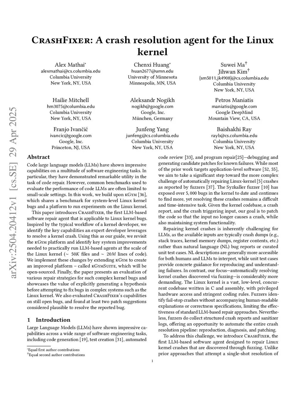 CrashFixer: A crash resolution agent for the Linux kernel