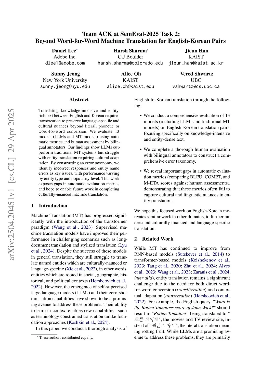 Team ACK at SemEval-2025 Task 2: Beyond Word-for-Word Machine Translation for English-Korean Pairs