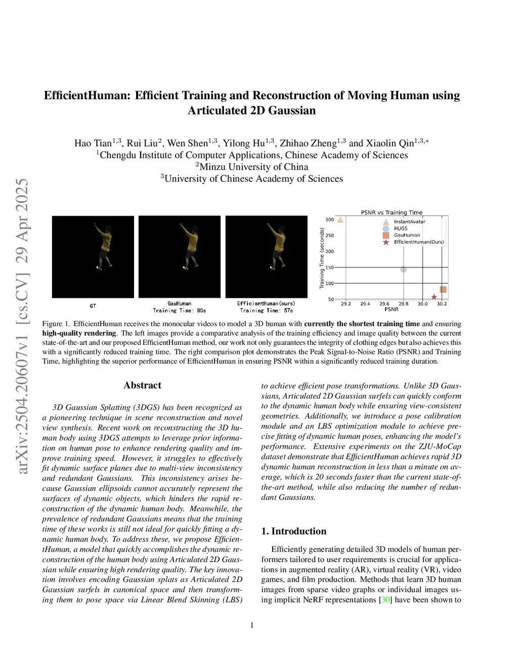 EfficientHuman: Efficient Training and Reconstruction of Moving Human using Articulated 2D Gaussian