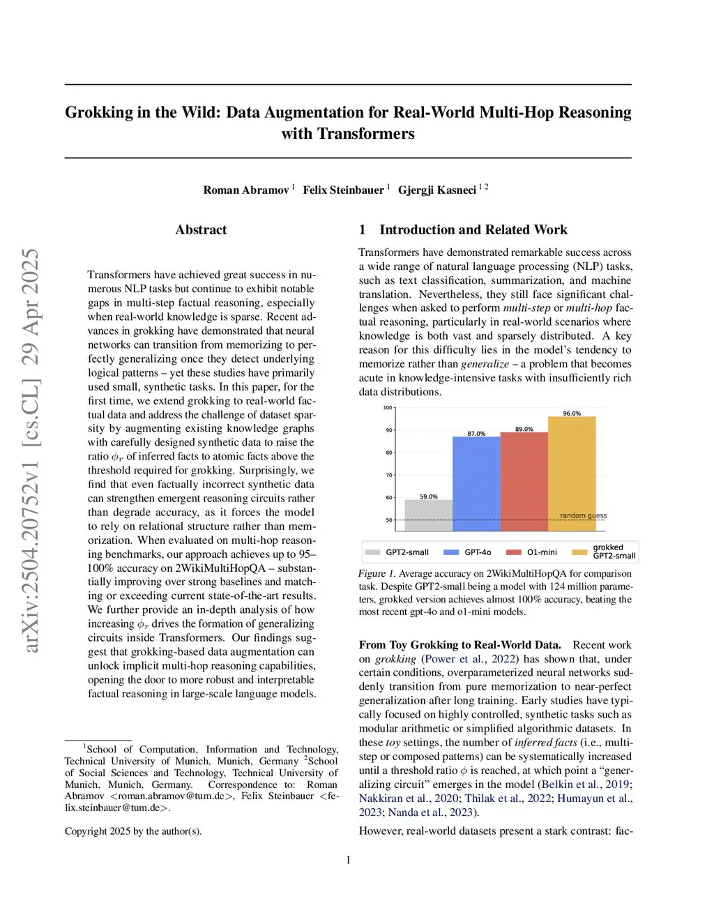 Grokking in the Wild: Data Augmentation for Real-World Multi-Hop Reasoning with Transformers