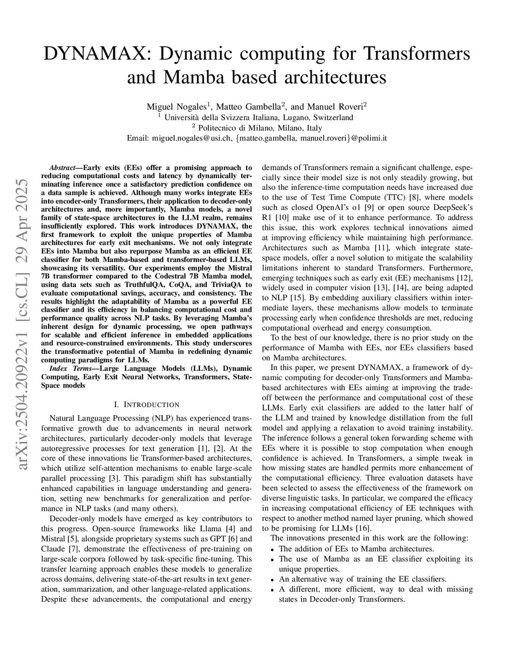DYNAMAX: Dynamic computing for Transformers and Mamba based architectures