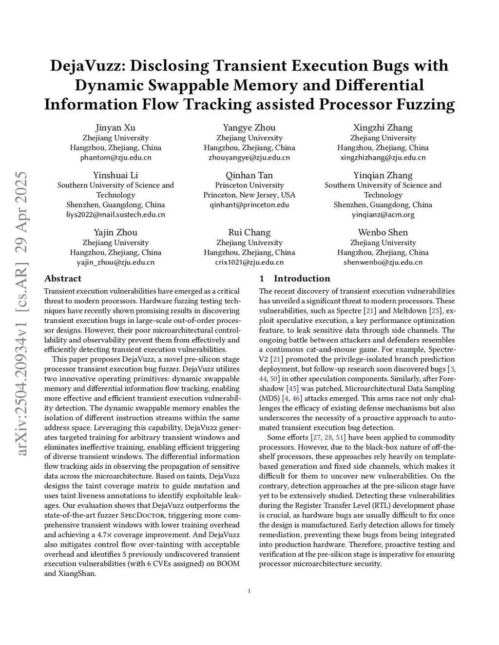 DejaVuzz: Disclosing Transient Execution Bugs with Dynamic Swappable Memory and Differential Information Flow Tracking assisted Processor Fuzzing