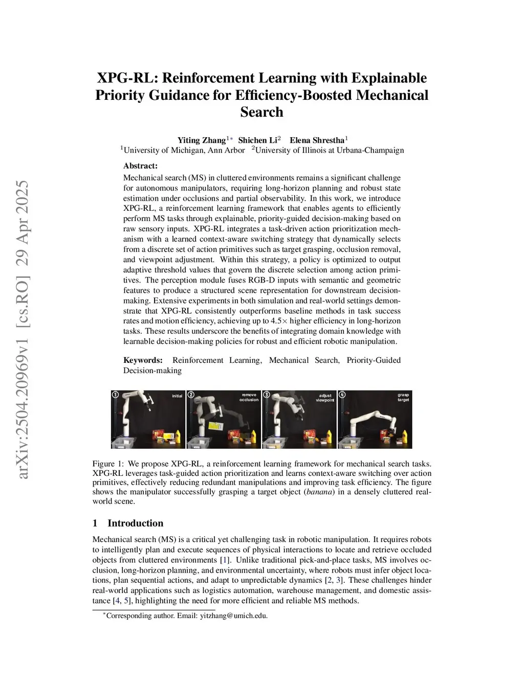 XPG-RL: Reinforcement Learning with Explainable Priority Guidance for Efficiency-Boosted Mechanical Search