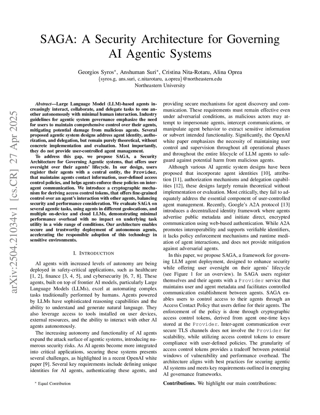 SAGA: A Security Architecture for Governing AI Agentic Systems