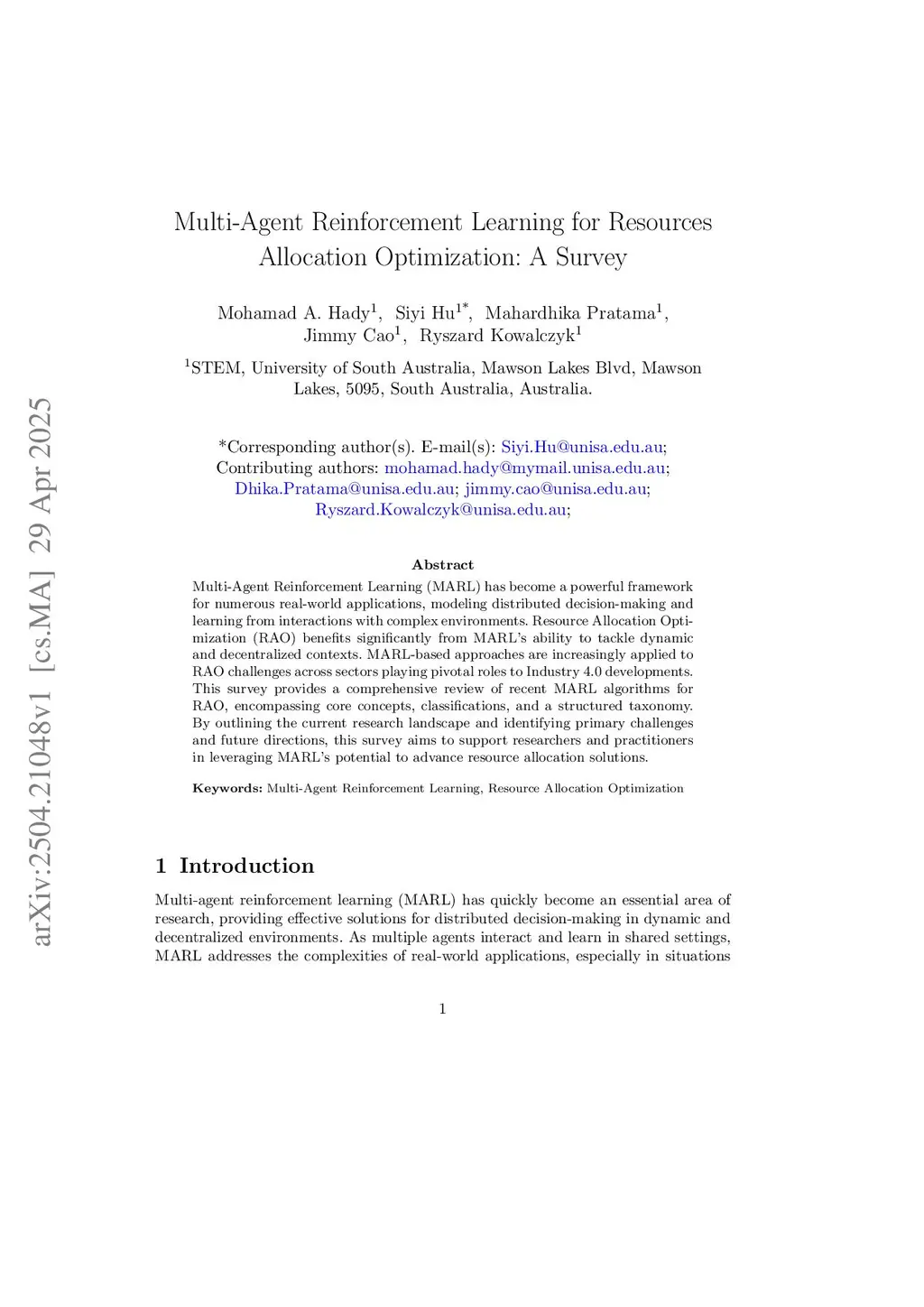 Multi-Agent Reinforcement Learning for Resources Allocation Optimization: A Survey