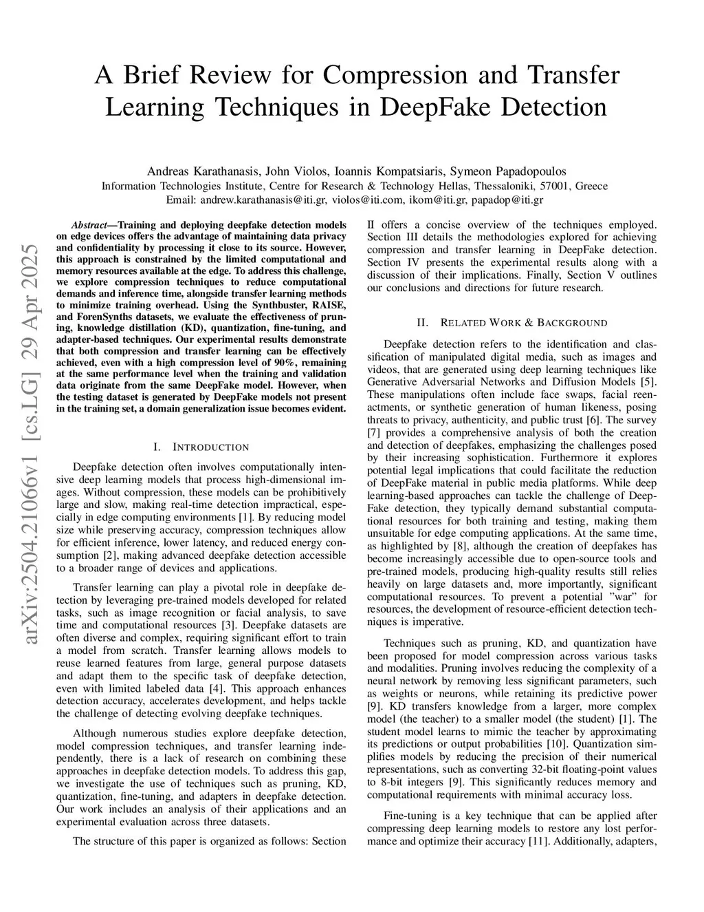 A Brief Review for Compression and Transfer Learning Techniques in DeepFake Detection