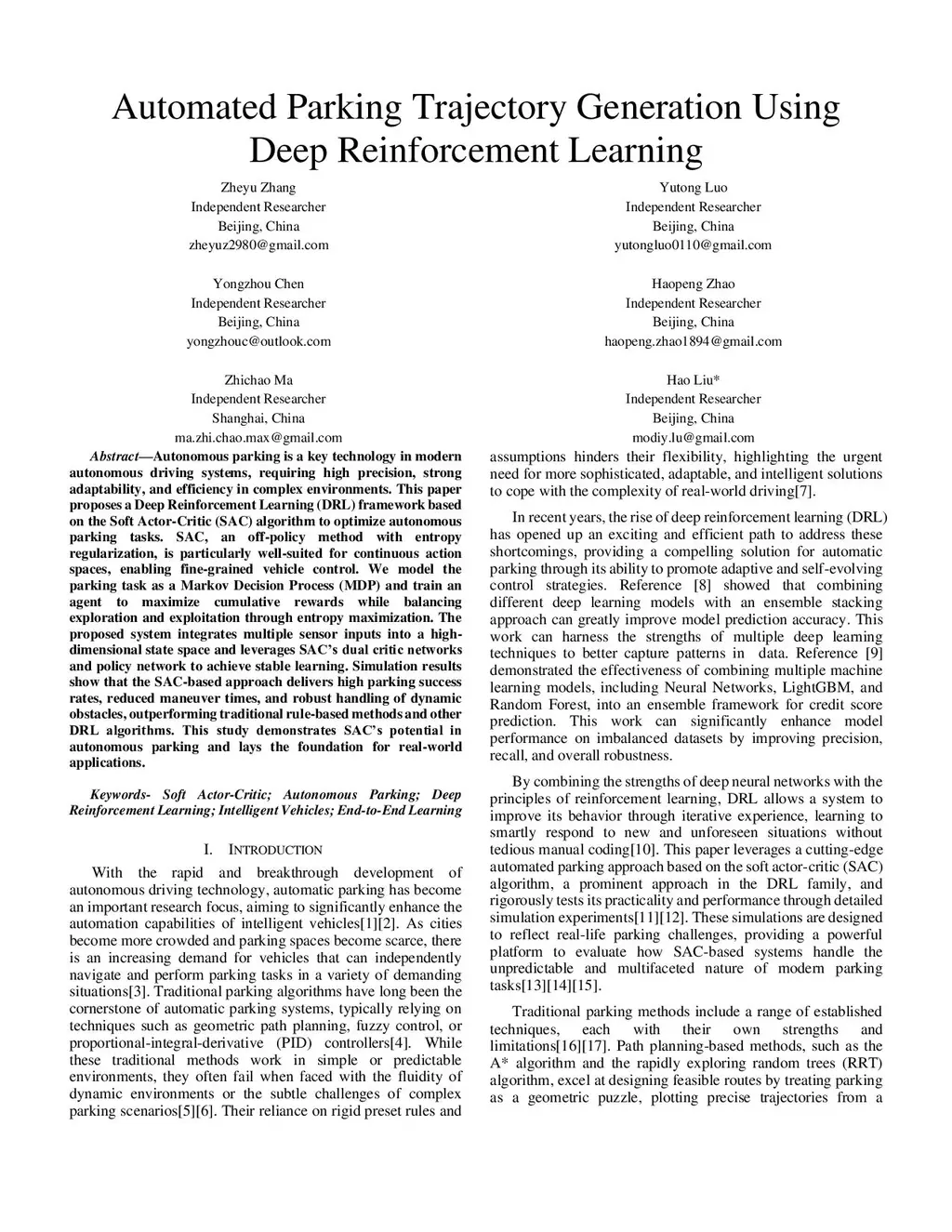 Automated Parking Trajectory Generation Using Deep Reinforcement Learning