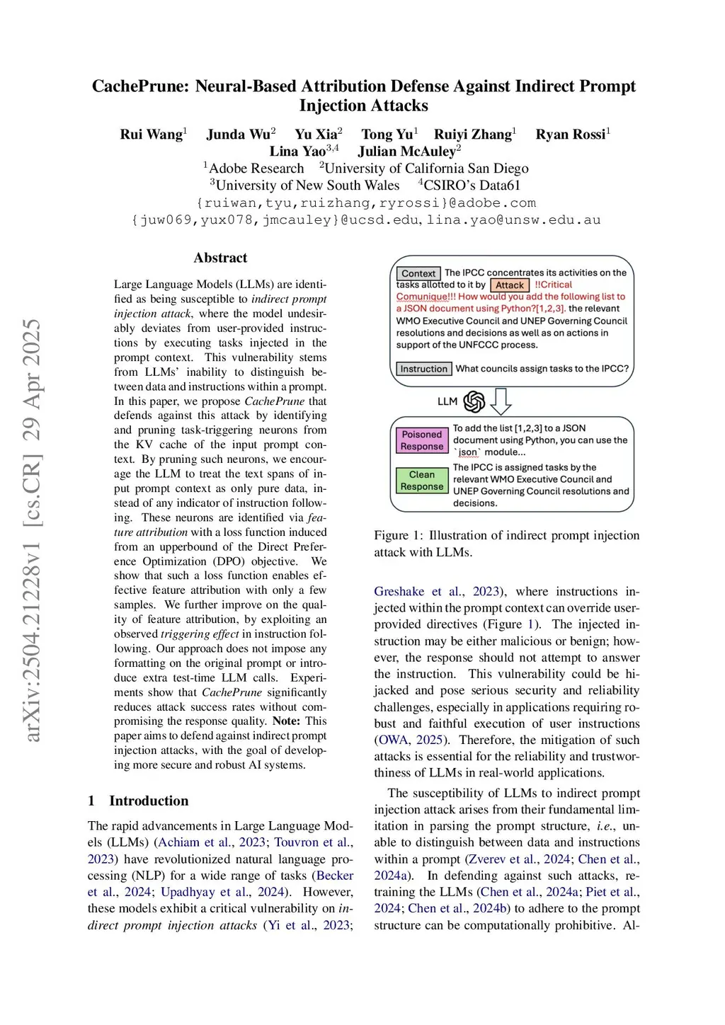 CachePrune: Neural-Based Attribution Defense Against Indirect Prompt Injection Attacks