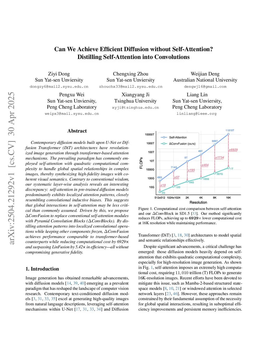 Contemporary diffusion models built upon U-Net or Diffusion Transformer (DiT) architectures have revolutionized image generation through transformer-based attention mechanisms. The prevailing paradigm has commonly employed self-attention with quadratic computational complexity to handle global spatial relationships in complex images, thereby synthesizing high-fidelity images with coherent visualthis http URLto conventional wisdom, our systematic layer-wise analysis reveals an interesting discrepancy: self-attention in pre-trained diffusion models predominantly exhibits localized attention patterns, closely resembling convolutional inductive biases. This suggests that global interactions in self-attention may be less critical than commonlythis http URLby this, we propose \(\Delta\)ConvFusion to replace conventional self-attention modules with Pyramid Convolution Blocks (\(\Delta\)ConvBlocks).By distilling attention patterns into localized convolutional operations while keeping other components frozen, \(\Delta\)ConvFusion achieves performance comparable to transformer-based counterparts while reducing computational cost by 6929 and surpassing LinFusion by 5.42 in efficiency--all without compromising generative fidelity.