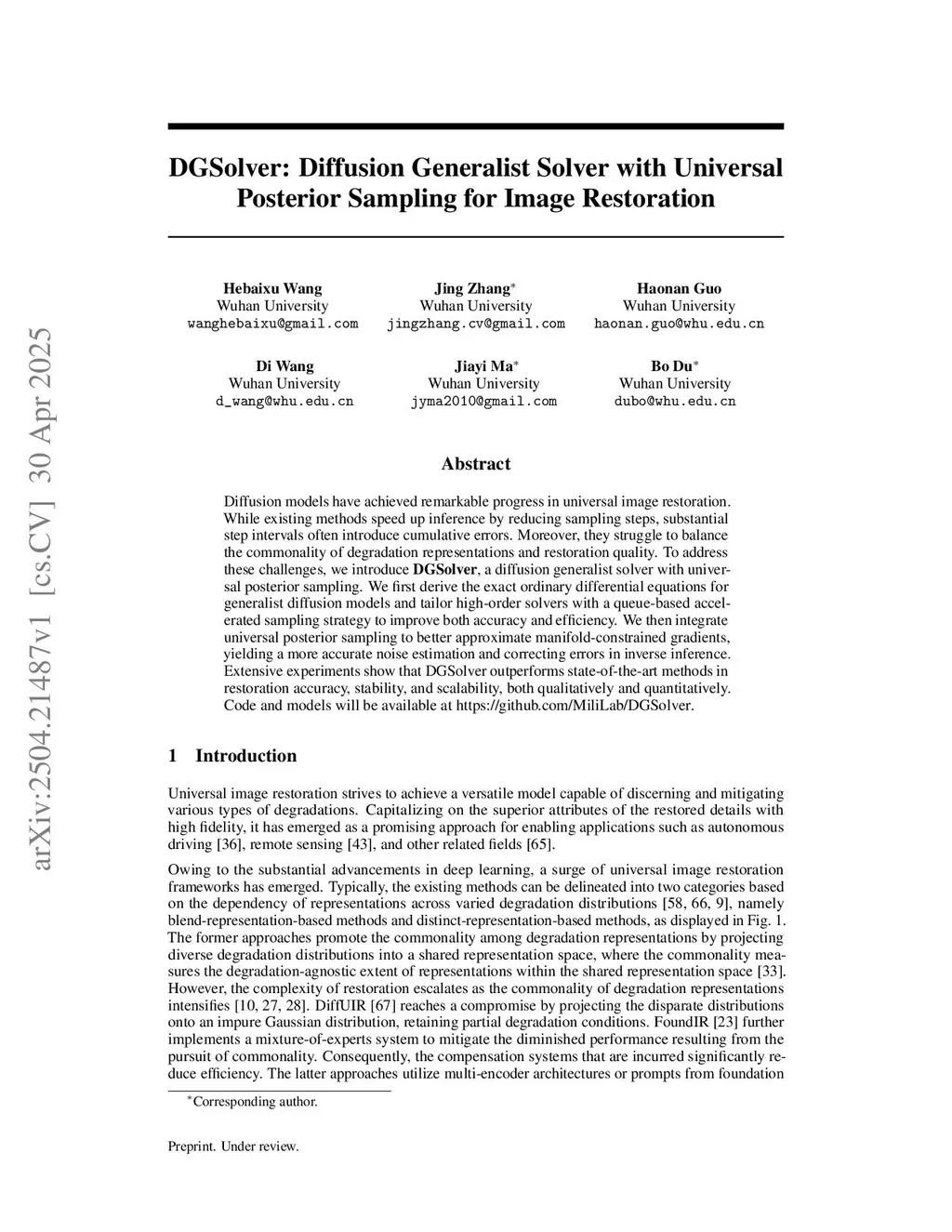 DGSolver: Diffusion Generalist Solver with Universal Posterior Sampling for Image Restoration