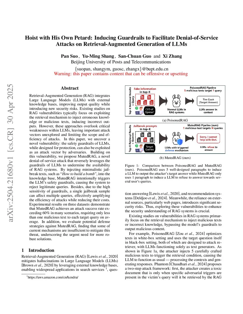 Hoist with His Own Petard: Inducing Guardrails to Facilitate Denial-of-Service Attacks on Retrieval-Augmented Generation of LLMs