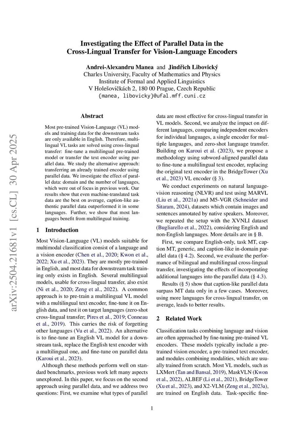 Investigating the Effect of Parallel Data in the Cross-Lingual Transfer for Vision-Language Encoders