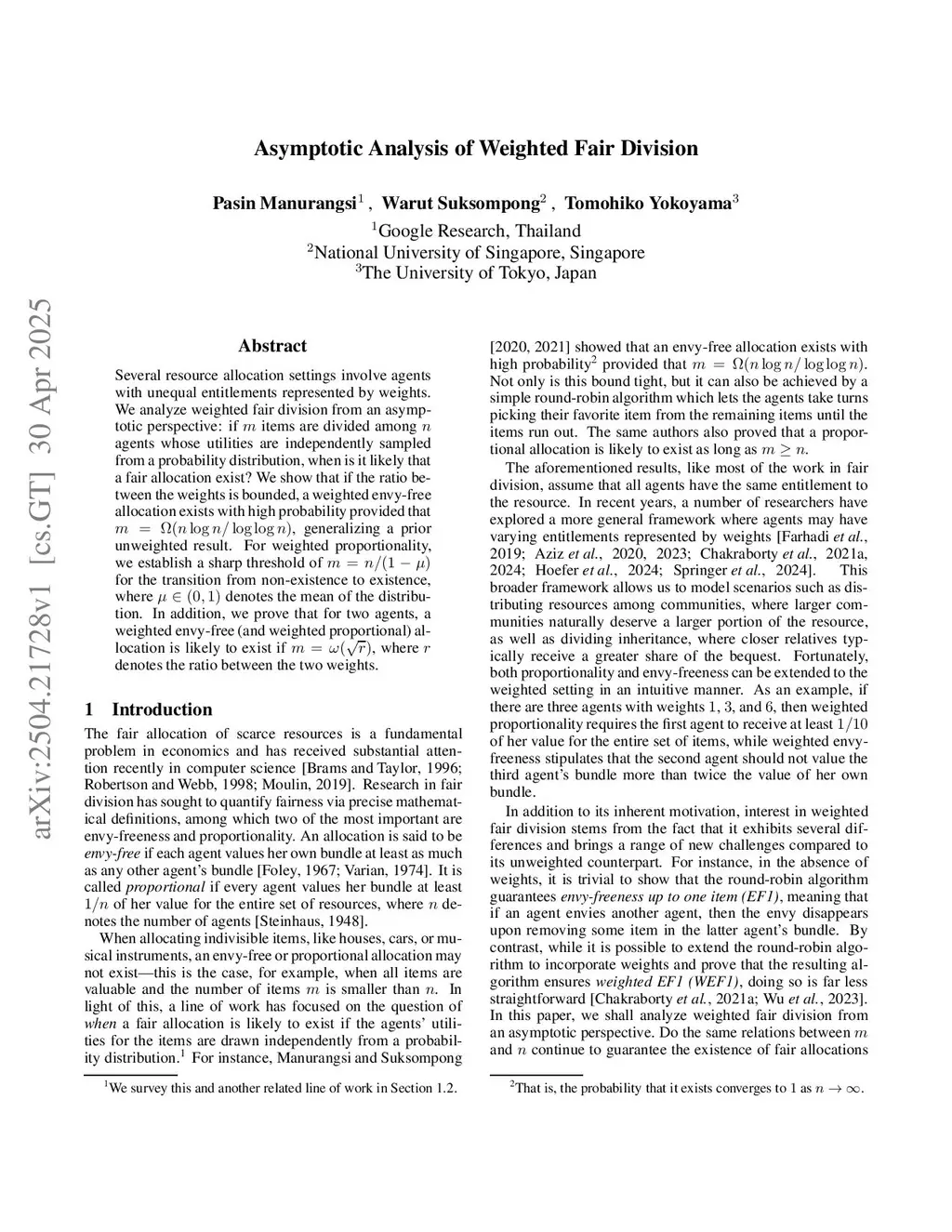 Asymptotic Analysis of Weighted Fair Division
