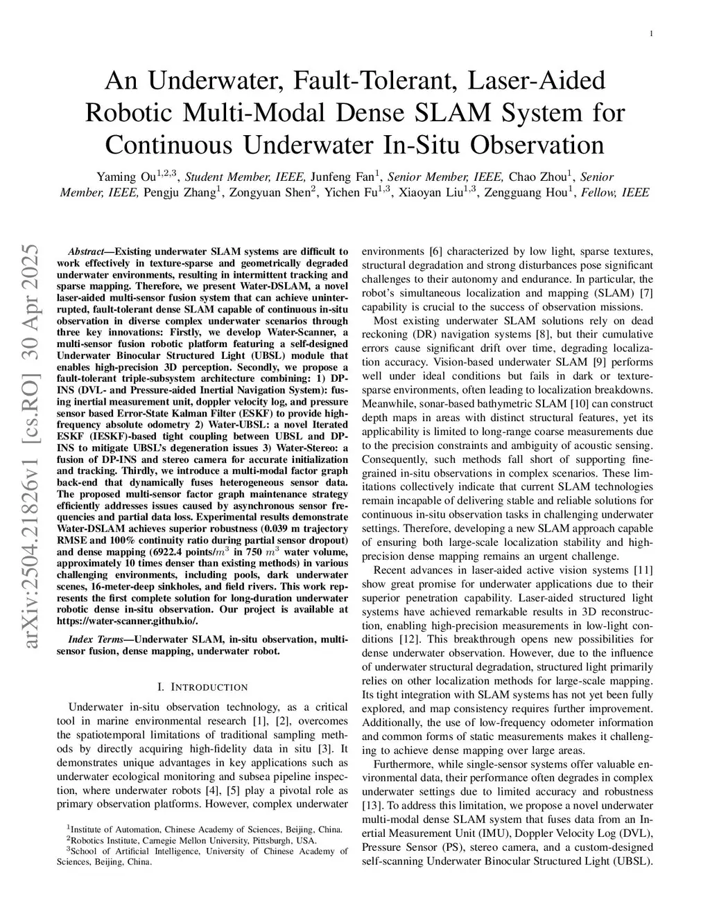 An Underwater, Fault-Tolerant, Laser-Aided Robotic Multi-Modal Dense SLAM System for Continuous Underwater In-Situ Observation