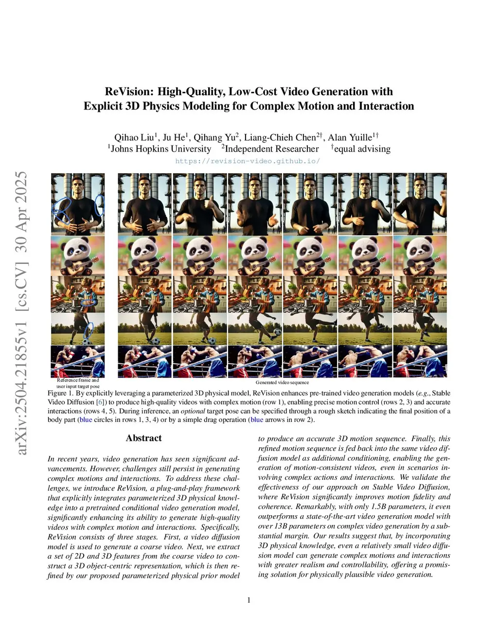 In recent years, video generation has seen significant advancements. However, challenges still persist in generating complex motions and interactions. To address these challenges, we introduce ReVision, a plug-and-play framework that explicitly integrates parameterized 3D model knowledge into a pretrained conditional video generation model, significantly enhancing its ability to generate high-quality videos with complex motion and interactions. Specifically, ReVision consists of three stages. First, a video diffusion model is used to generate a coarse video. Next, we extract a set of 2D and 3D features from the coarse video to construct a 3D object-centric representation, which is then refined by our proposed parameterized motion prior model to produce an accurate 3D motion sequence. Finally, this refined motion sequence is fed back into the same video diffusion model as additional conditioning, enabling the generation of motion-consistent videos, even in scenarios involving complex actions and interactions. We validate the effectiveness of our approach on Stable Video Diffusion, where ReVision significantly improves motion fidelity and coherence. Remarkably, with only 1.5B parameters, it even outperforms a state-of-the-art video generation model with over 13B parameters on complex video generation by a substantial margin. Our results suggest that, by incorporating 3D motion knowledge, even a relatively small video diffusion model can generate complex motions and interactions with greater realism and controllability, offering a promising solution for physically plausible video generation.