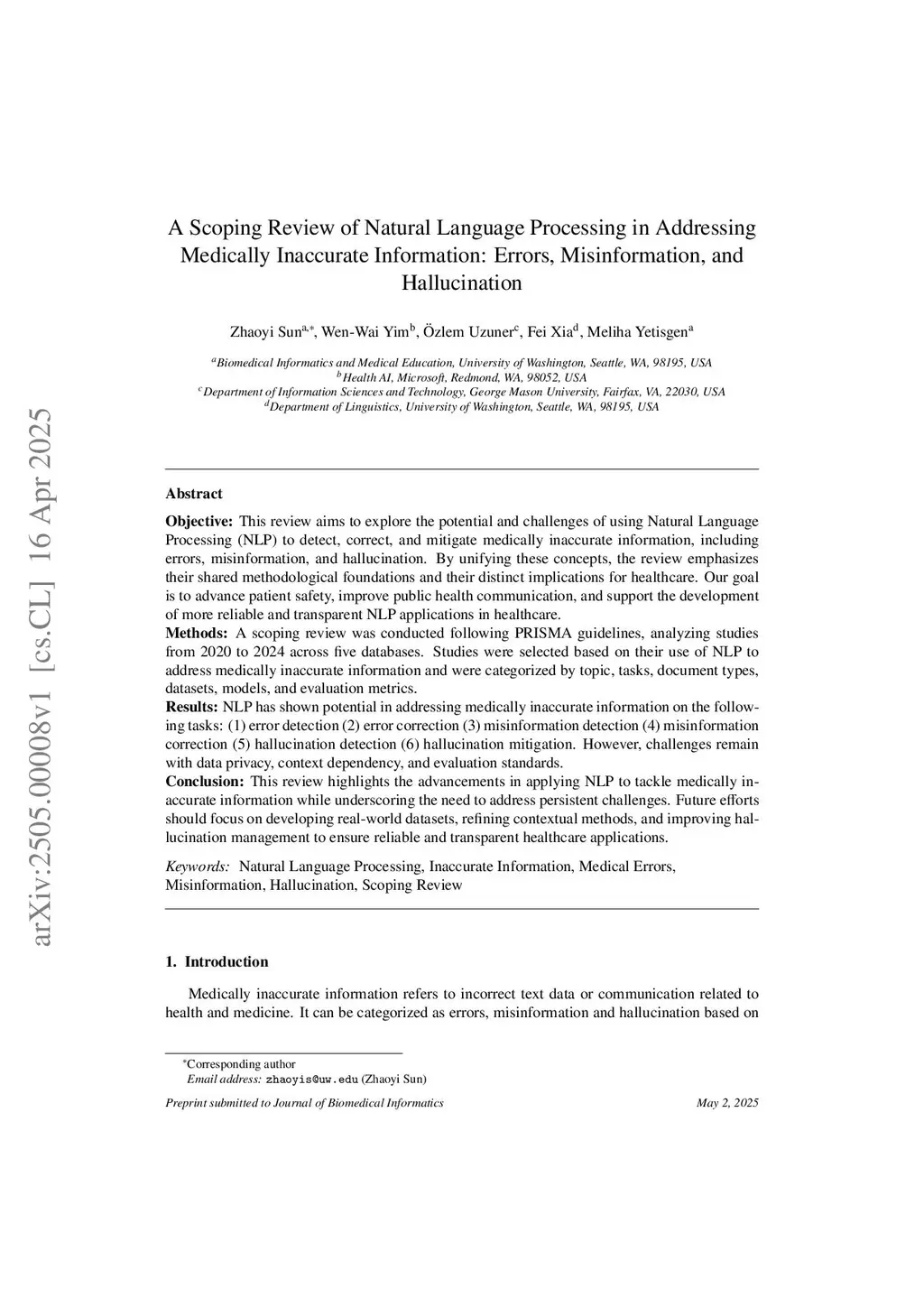 A Scoping Review of Natural Language Processing in Addressing Medically Inaccurate Information: Errors, Misinformation, and Hallucination