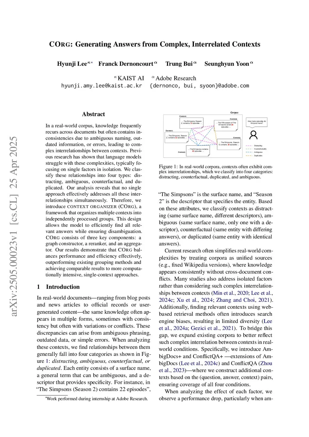 CORG: Generating Answers from Complex, Interrelated Contexts