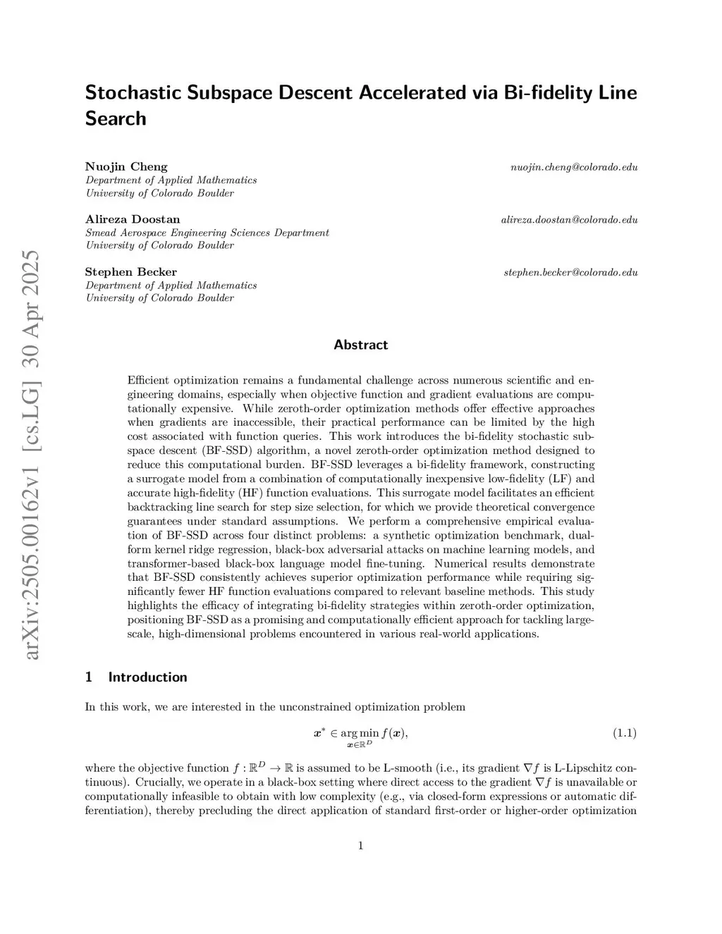 Stochastic Subspace Descent Accelerated via Bi-fidelity Line Search