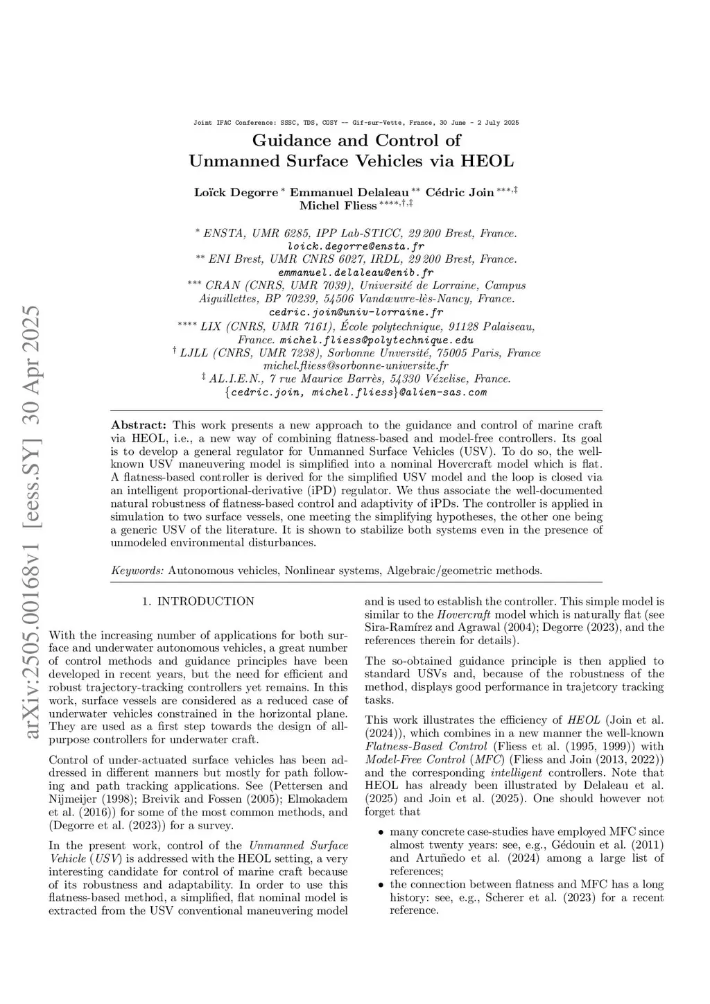 Guidance and Control of Unmanned Surface Vehicles via HEOL