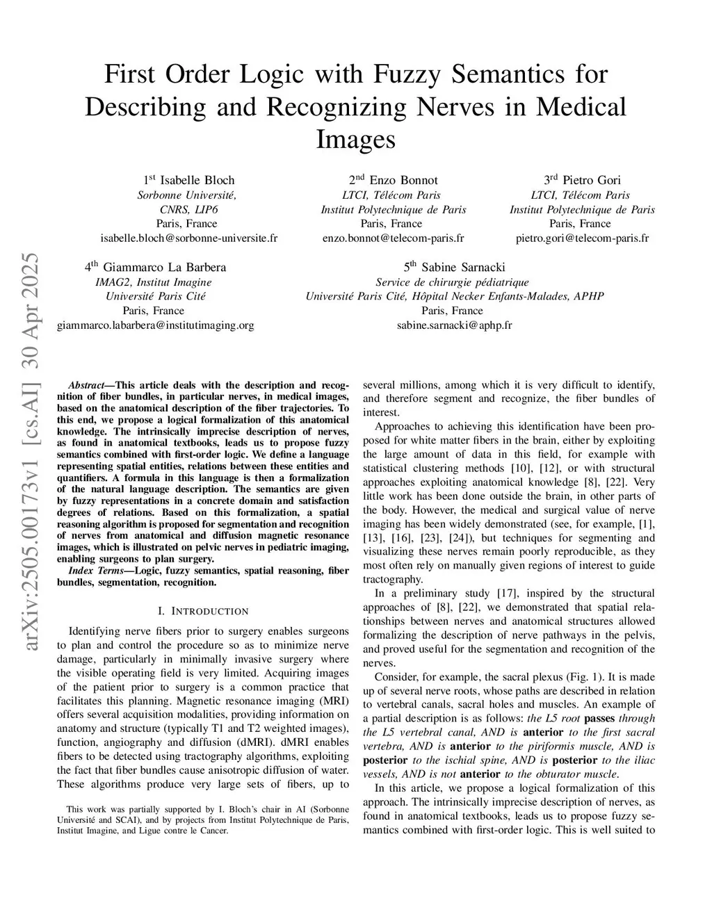 First Order Logic with Fuzzy Semantics for Describing and Recognizing Nerves in Medical Images