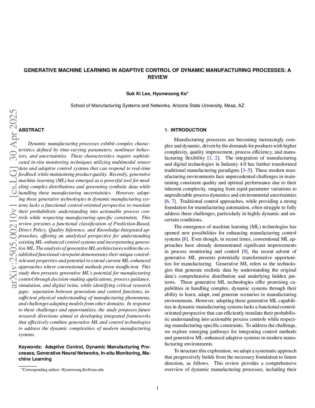 Generative Machine Learning in Adaptive Control of Dynamic Manufacturing Processes: A Review