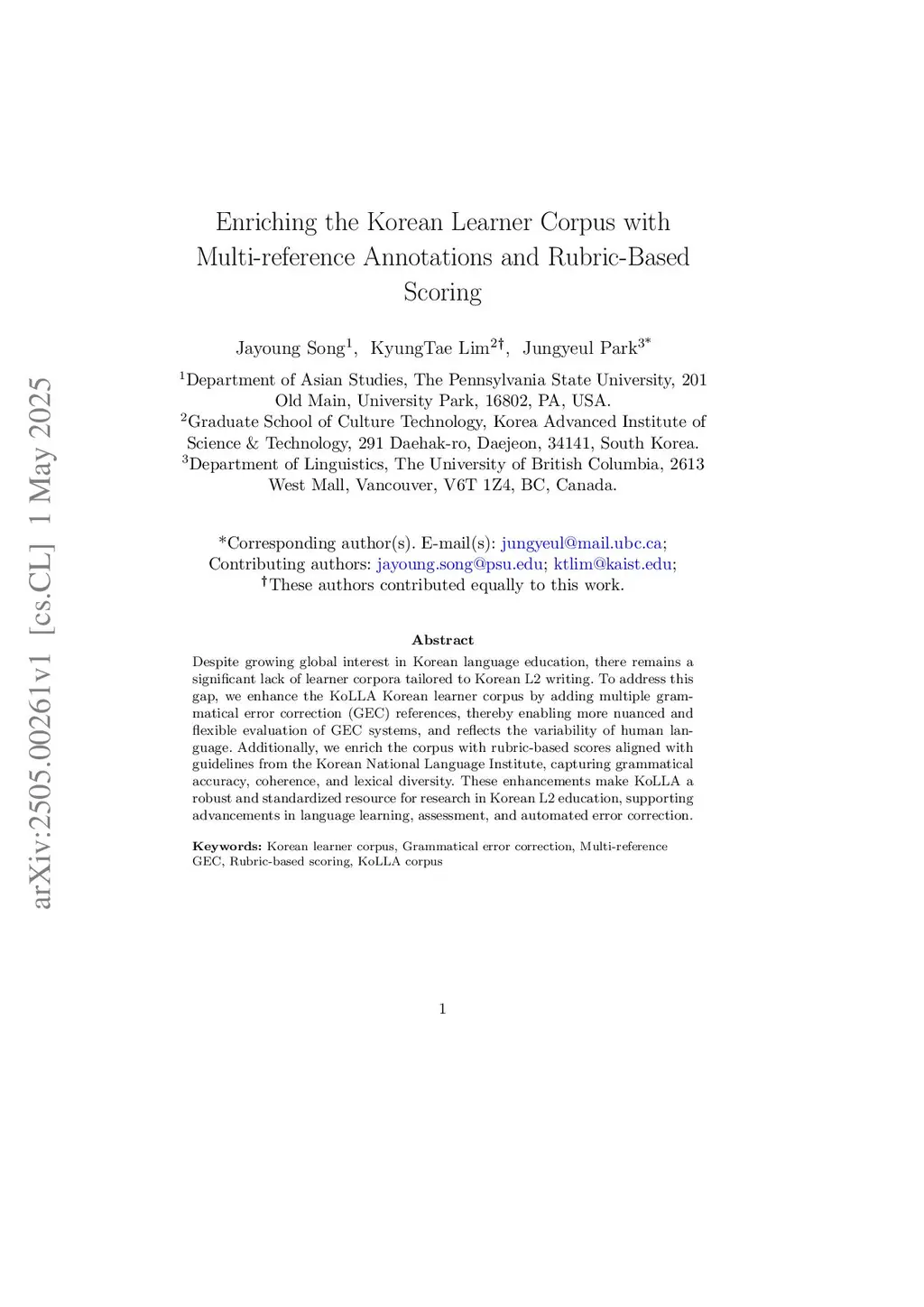 Enriching the Korean Learner Corpus with Multi-reference Annotations and Rubric-Based Scoring