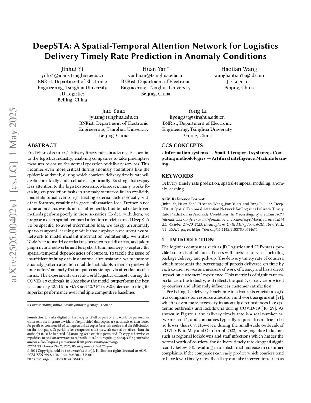 DeepSTA: A Spatial-Temporal Attention Network for Logistics Delivery Timely Rate Prediction in Anomaly Conditions