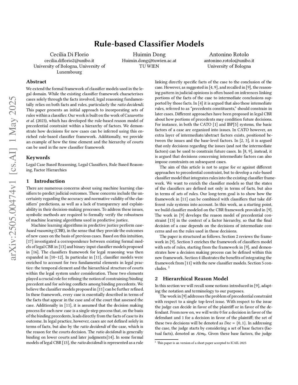 We extend the formal framework of classifier models used in the legal domain. While the existing classifier framework characterises cases solely through the facts involved, legal reasoning fundamentally relies on both facts and rules, particularly the ratio decidendi. This paper presents an initial approach to incorporating sets of rules within a classifier. Our work is built on the work of Canavotto et al. (2023), which has developed the rule-based reason model of precedential constraint within a hierarchy of factors. We demonstrate how decisions for new cases can be inferred using this enriched rule-based classifier framework. Additionally, we provide an example of how the time element and the hierarchy of courts can be used in the new classifier framework.