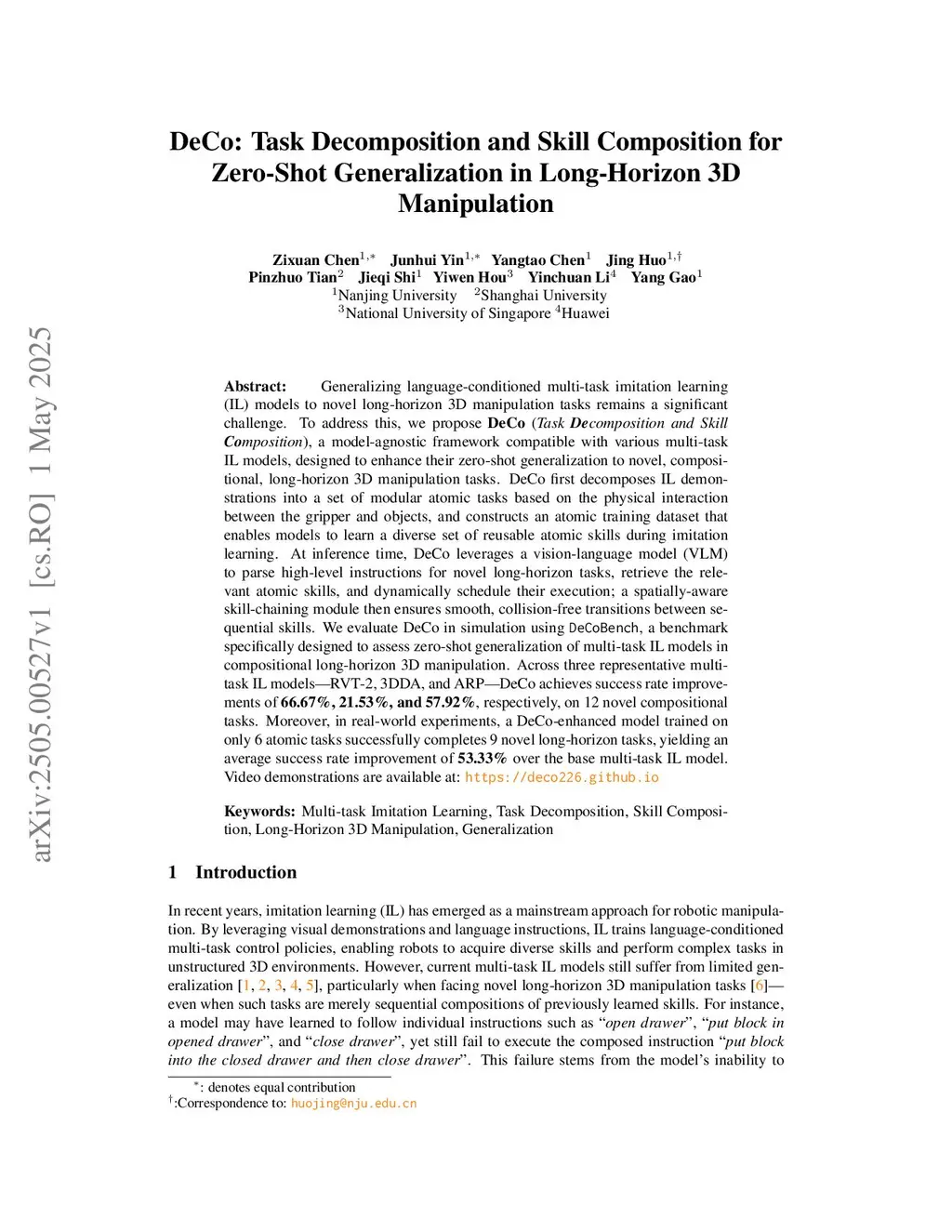 DeCo: Task Decomposition and Skill Composition for Zero-Shot Generalization in Long-Horizon 3D Manipulation