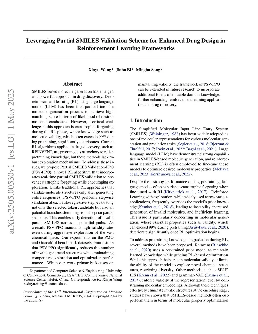 SMILES-based molecule generation has emerged as a powerful approach in drug discovery. Deep reinforcement learning (RL) using large language model (LLM) has been incorporated into the molecule generation process to achieve high matching score in term of likelihood of desired molecule candidates. However, a critical challenge in this approach is catastrophic forgetting during the RL phase, where knowledge such as molecule validity, which often exceeds 99\% during pretraining, significantly deteriorates. Current RL algorithms applied in drug discovery, such as REINVENT, use prior models as anchors to retian pretraining knowledge, but these methods lack robust exploration mechanisms. To address these issues, we propose Partial SMILES Validation-PPO (PSV-PPO), a novel RL algorithm that incorporates real-time partial SMILES validation to prevent catastrophic forgetting while encouraging exploration. Unlike traditional RL approaches that validate molecule structures only after generating entire sequences, PSV-PPO performs stepwise validation at each auto-regressive step, evaluating not only the selected token candidate but also all potential branches stemming from the prior partial sequence. This enables early detection of invalid partial SMILES across all potential paths. As a result, PSV-PPO maintains high validity rates even during aggressive exploration of the vast chemical space. Our experiments on the PMO and GuacaMol benchmark datasets demonstrate that PSV-PPO significantly reduces the number of invalid generated structures while maintaining competitive exploration and optimization performance. While our work primarily focuses on maintaining validity, the framework of PSV-PPO can be extended in future research to incorporate additional forms of valuable domain knowledge, further enhancing reinforcement learning applications in drug discovery.