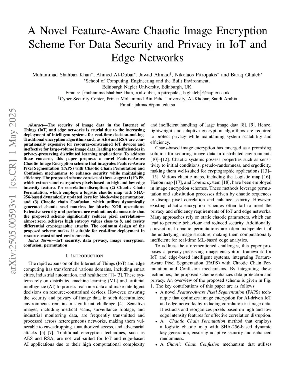 A Novel Feature-Aware Chaotic Image Encryption Scheme For Data Security and Privacy in IoT and Edge Networks