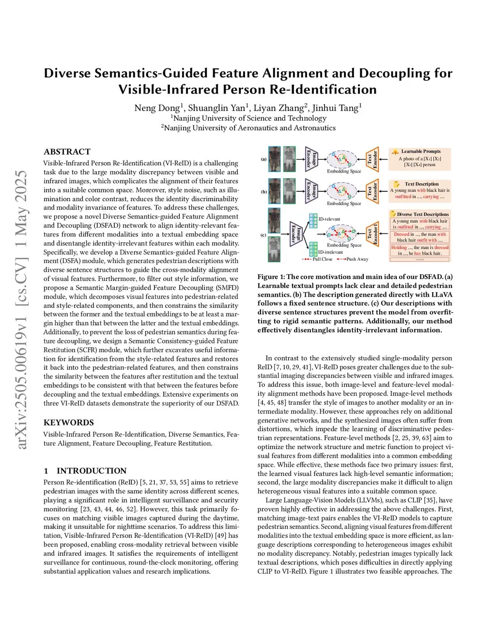 Diverse Semantics-Guided Feature Alignment and Decoupling for Visible-Infrared Person Re-Identification