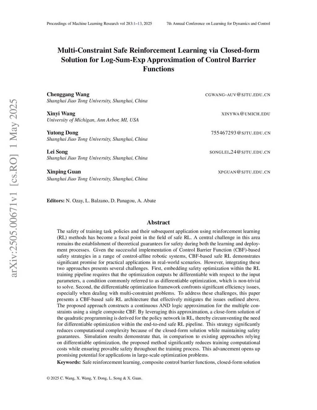 Multi-Constraint Safe Reinforcement Learning via Closed-form Solution for Log-Sum-Exp Approximation of Control Barrier Functions