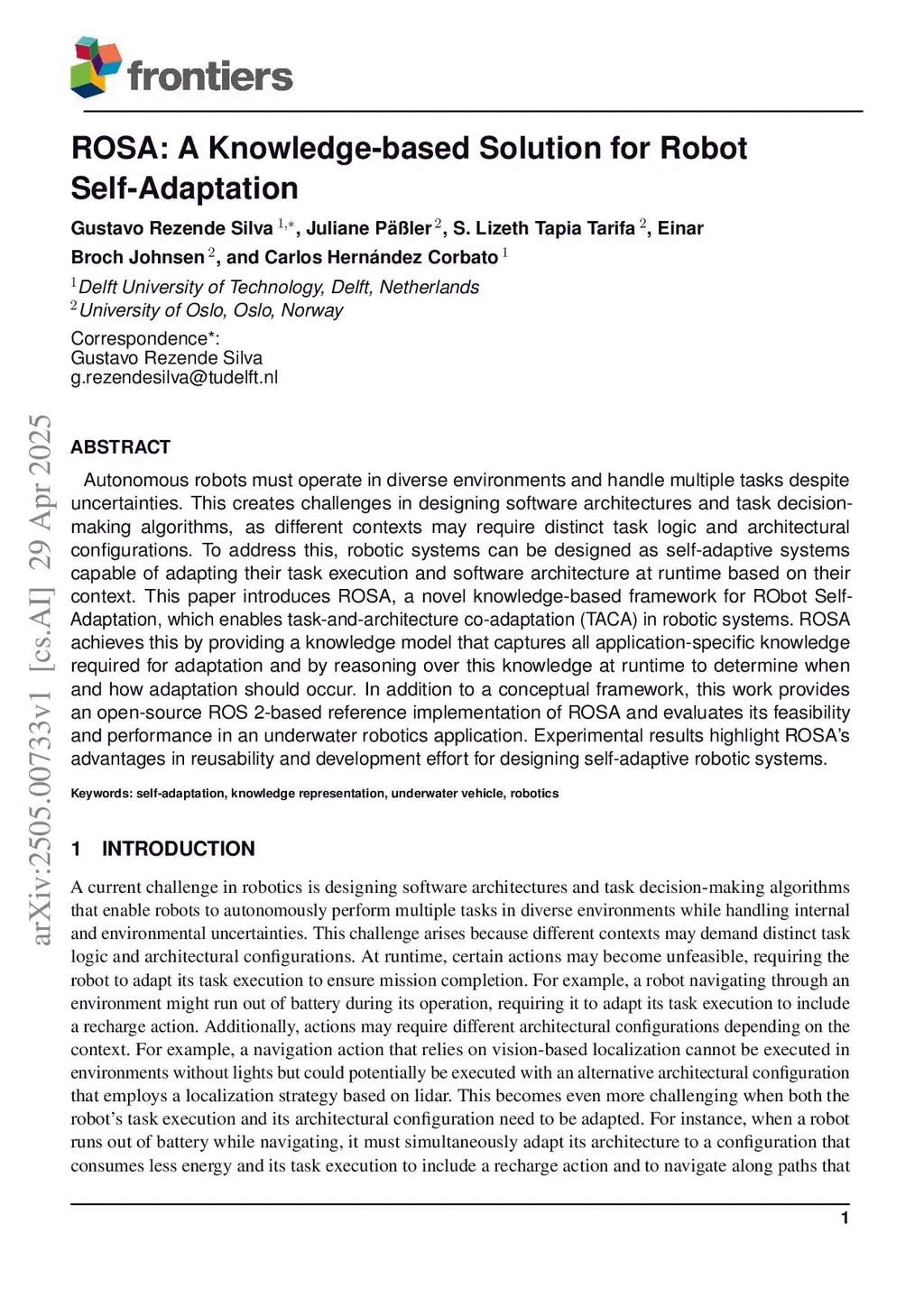 ROSA: A Knowledge-based Solution for Robot Self-Adaptation