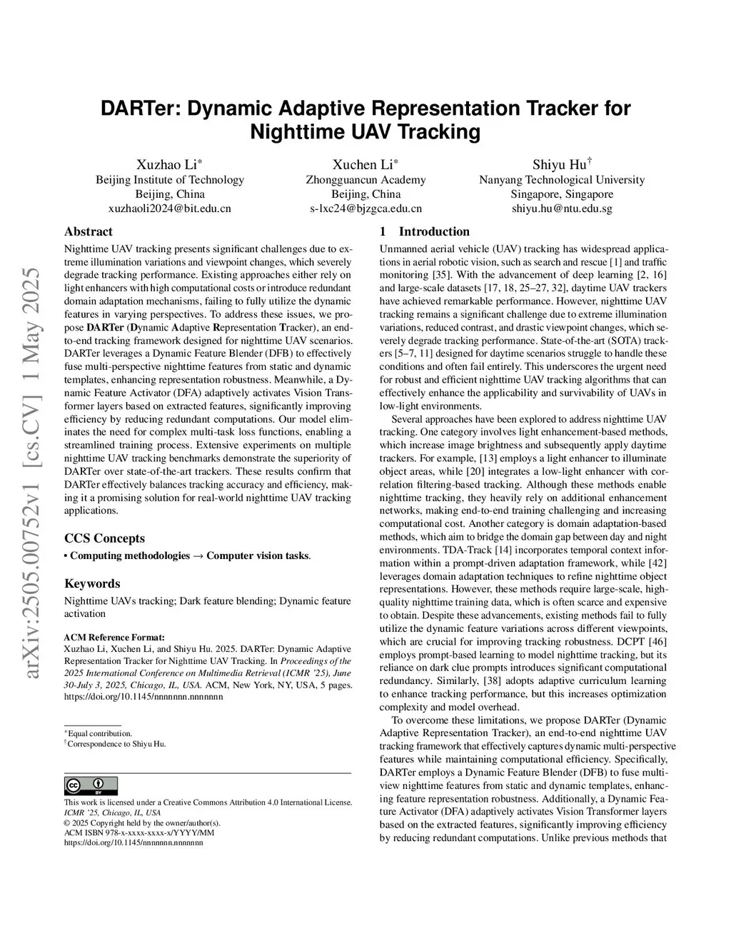DARTer: Dynamic Adaptive Representation Tracker for Nighttime UAV Tracking