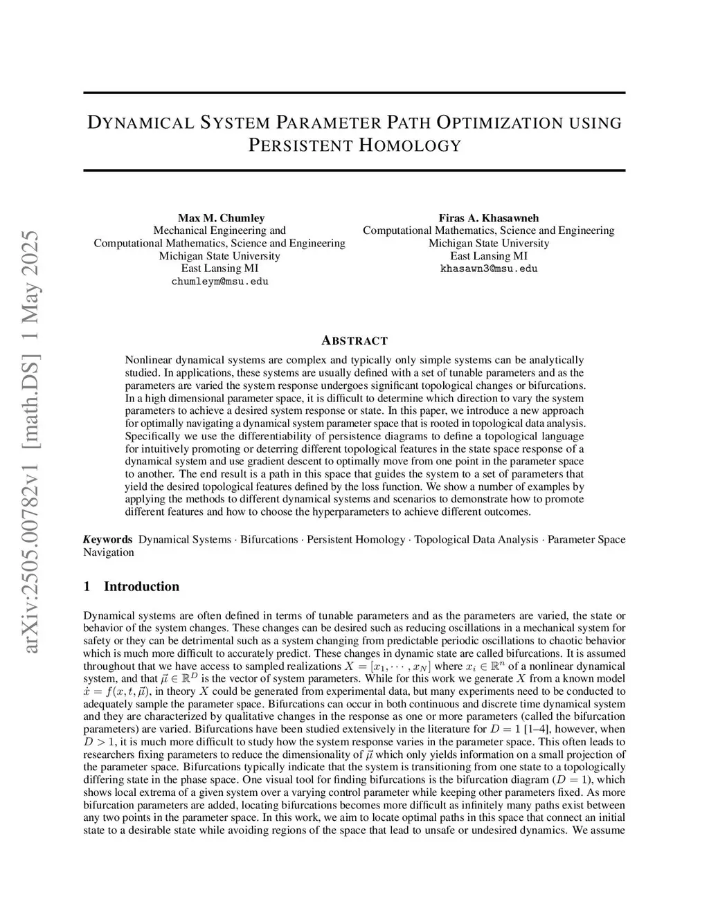 Dynamical System Parameter Path Optimization using Persistent Homology