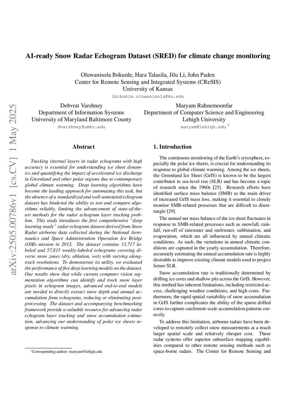 AI-ready Snow Radar Echogram Dataset (SRED) for climate change monitoring