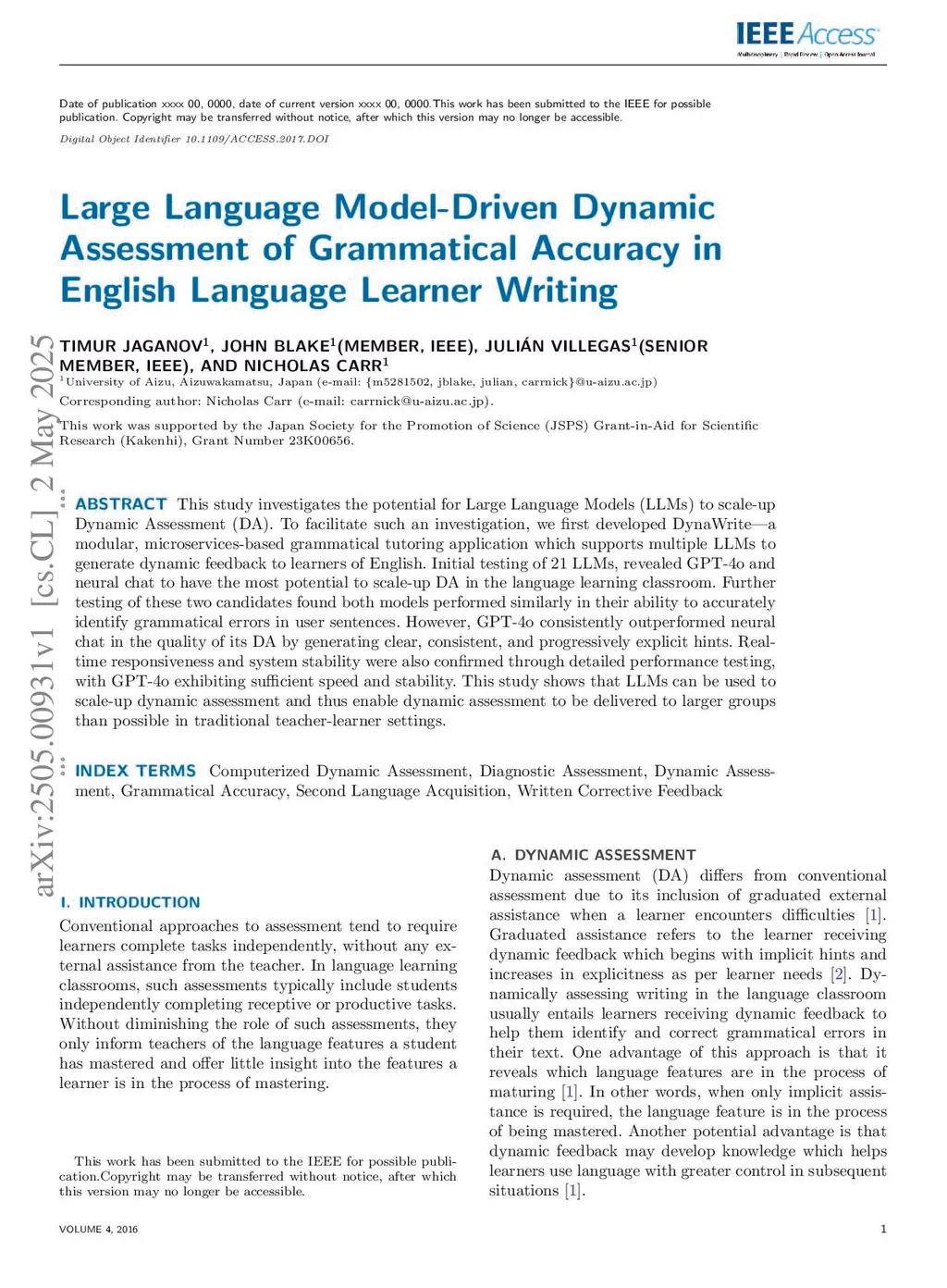 Large Language Model-Driven Dynamic Assessment of Grammatical Accuracy in English Language Learner Writing