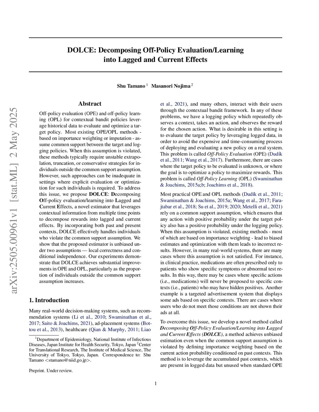 DOLCE: Decomposing Off-Policy Evaluation/Learning into Lagged and Current Effects