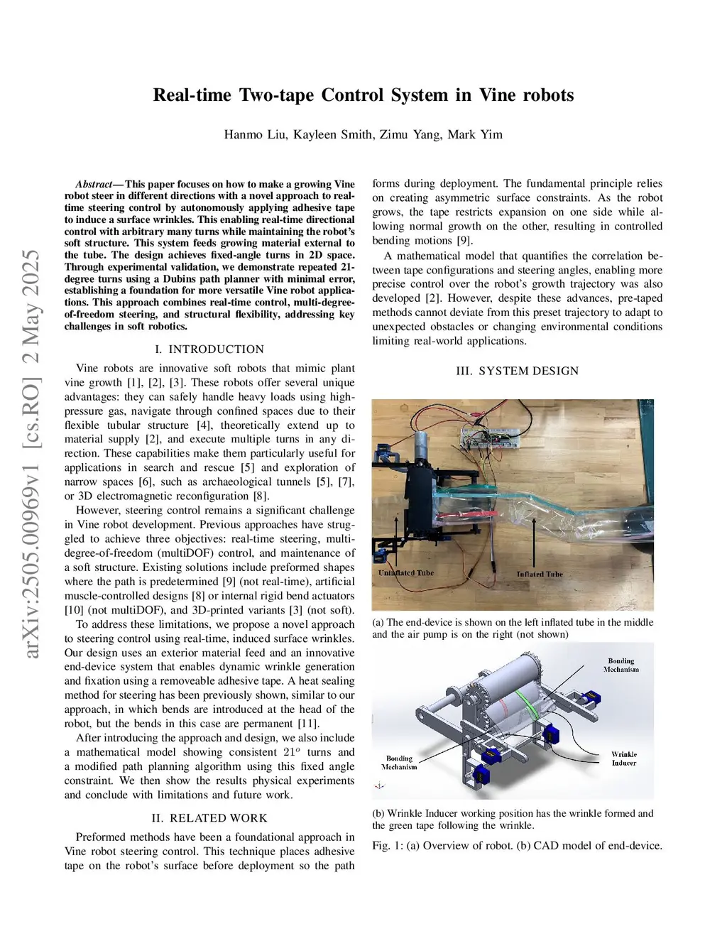 This paper focuses on how to make a growing Vine robot steer in different directions with a novel approach to real-time steering control by autonomously applying adhesive tape to induce a surface wrinkles. This enabling real-time directional control with arbitrary many turns while maintaining the robot's soft structure. This system feeds growing material external to the tube. The design achieves fixed-angle turns in 2D space. Through experimental validation, we demonstrate repeated 21-degree turns using a Dubins path planner with minimal error, establishing a foundation for more versatile Vine robot applications. This approach combines real-time control, multi-degree-of-freedom steering, and structural flexibility, addressing key challenges in soft robotics.