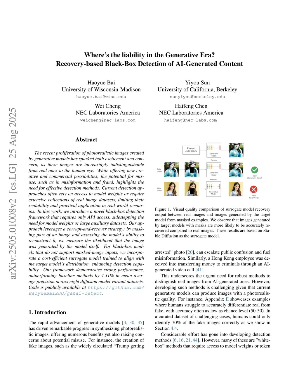 Where's the liability in the Generative Era? Recovery-based Black-Box Detection of AI-Generated Content