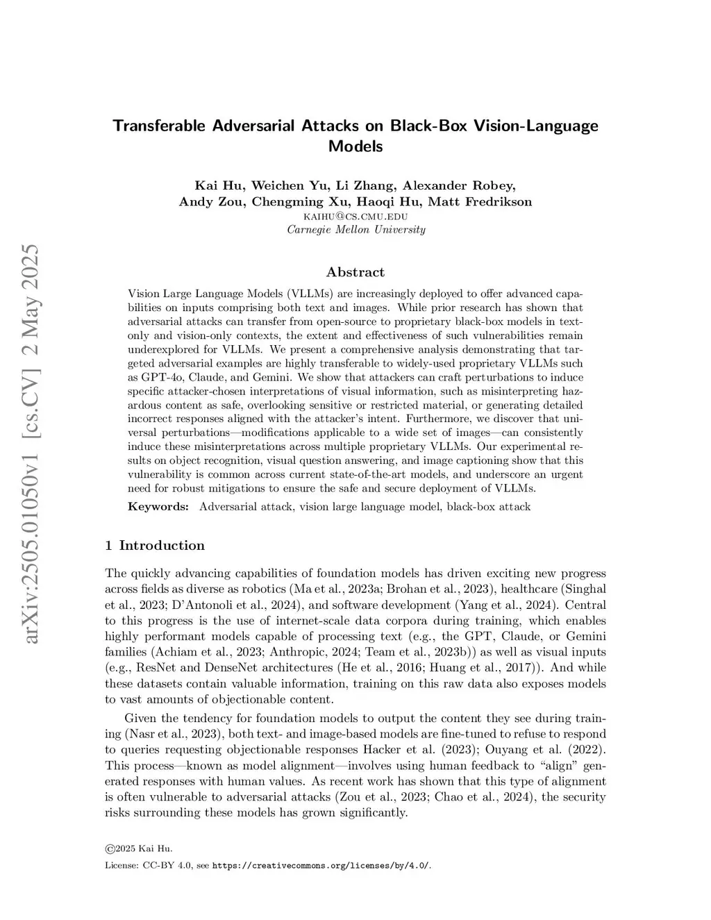 Vision Large Language Models (VLLMs) are increasingly deployed to offer advanced capabilities on inputs comprising both text and images. While prior research has shown that adversarial attacks can transfer from open-source to proprietary black-box models in text-only and vision-only contexts, the extent and effectiveness of such vulnerabilities remain underexplored for VLLMs. We present a comprehensive analysis demonstrating that targeted adversarial examples are highly transferable to widely-used proprietary VLLMs such as GPT-4o, Claude, and Gemini. We show that attackers can craft perturbations to induce specific attacker-chosen interpretations of visual information, such as misinterpreting hazardous content as safe, overlooking sensitive or restricted material, or generating detailed incorrect responses aligned with the attacker's intent. Furthermore, we discover that universal perturbations -- modifications applicable to a wide set of images -- can consistently induce these misinterpretations across multiple proprietary VLLMs. Our experimental results on object recognition, visual question answering, and image captioning show that this vulnerability is common across current state-of-the-art models, and underscore an urgent need for robust mitigations to ensure the safe and secure deployment of VLLMs.